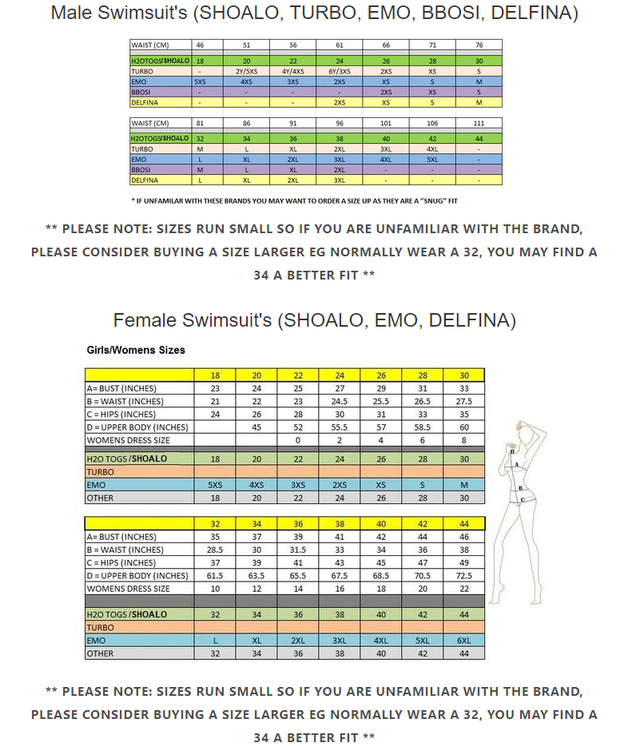 Please refer to the size chart for measurements. We strongly recommend that you order at least one size up as they are a "snug" fit!